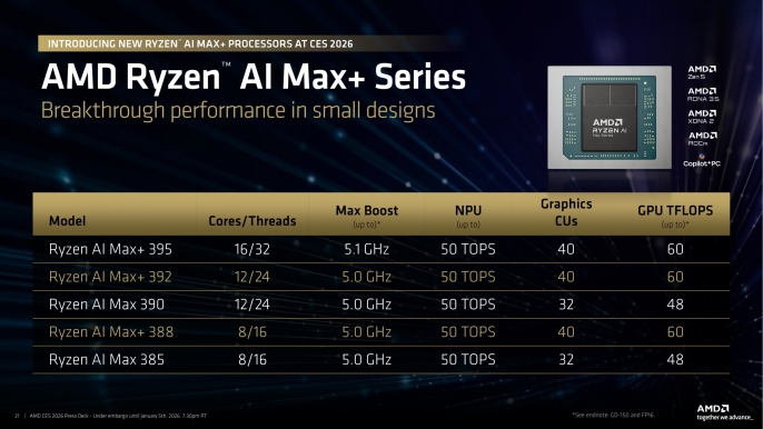 AMD'nin Ryzen AI Max+ 300 serisine eklediği yenilikler, özellikle oyuncular ve mini PC meraklıları için daha ilgi çekici olabilir. Bu serinin en belirgin özelliği, giriş seviyesi harici ekran kartlarına rakip olabilen güçlü entegre Radeon GPU'ları içermesi. AMD, Ryzen AI Max+ 392 ve 388 modelleriyle, tam kapasiteli GPU'ları korurken, sırasıyla 12 ve 8 gibi daha az sayıda CPU çekirdeği sunuyor. Bu durum, ihtiyacı olmayan ekstra CPU çekirdeklerine para ödemeden maksimum grafik performansı isteyen kullanıcılar için daha uygun fiyatlı seçenekler sunabilir. Ancak bu işlemcilerin tamamı mevcut RDNA 3 grafik mimarisini kullandığı için, AMD'nin Nvidia'nın DLSS teknolojisiyle rekabet etmek için duyurduğu yeni “FSR Redstone” yükseltme teknolojisinden faydalanamayacak. Masaüstü bilgisayar toplayanlar için ise tek bir yeni AM5 soketli işlemci duyuruldu: Ryzen 7 9850X3D. Bu çip, 8 çekirdekli bir Zen 5 işlemci olup AMD’nin 64 MB’lık 3D V-Cache teknolojisine sahip, daha hızlı bir Ryzen 7 9800X3D versiyonu olarak öne çıkıyor.