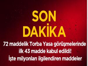 TBMM Genel Kurulu tarafından yapılan görüşmelerde şu ana kadar kanun teklifinin ilk 43 maddesi kabul edildi. Torba Yasa teklifinin Resmi Gazete ile yayımlanabilmesi için 71 maddenin tümünün görüşmelerinin tamamlanması ve ardından da bu maddelerin Cumhurbaşkanı tarafından onaylanması gerekiyor.