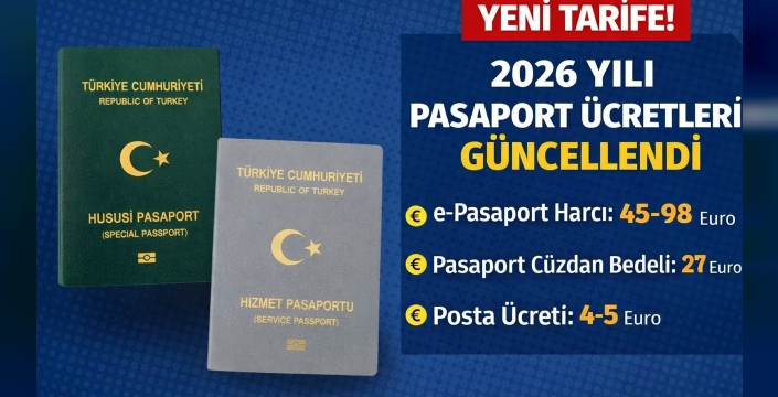 Almanya'dan bildirilen habere göre, 2026 yılı için pasaport harçları, defter ücretleri ve posta bedelleri açıklandı. Yeni düzenlemelerle birlikte pasaport ücretleri, geçerlilik sürelerine göre farklılık gösterecek.