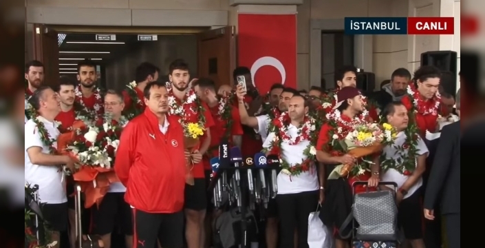 12 Dev Adam olarak bilinen milli basketbolcularımız, bugün İstanbul'a döndü. Havalimanında onları karşılamak için büyük bir kalabalık toplanmış, milli takım oyuncularını coşkuyla karşılamıştı.