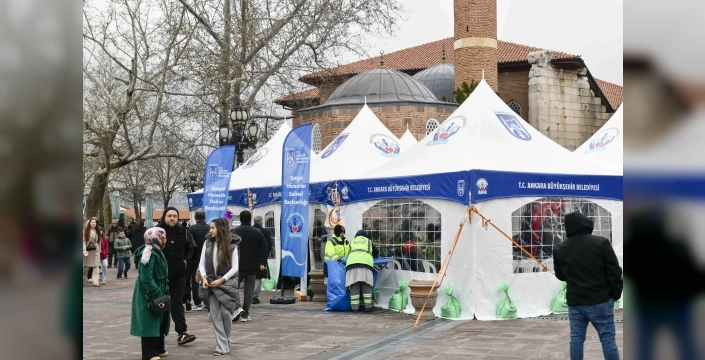Sosyal Hizmetler Daire Başkanlığı tarafından Ramazan'a özel olarak Hacı Bayram-ı Veli Camisi avlusuna kurulan etkinlik çadırı, manevi atmosferiyle ön plana çıkıyor. Vatandaşlar, bu alanda düzenlenen çeşitli etkinliklerle Ramazan'ın maneviyatını dolu dolu yaşıyor.