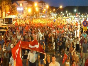 Zeytin Çekirdeklerinin coşku dolu konserinin ardından lazer ve havai fişek gösterileri ilgiyle izlendi. Ayvalıkta yaşayanlar, Zafer bayramını İzmir marşı başta olmak üzere marşlara eşlik ederek kutladı.