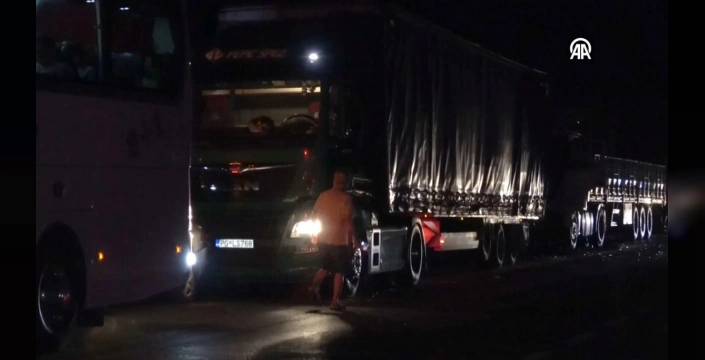 24 yaşındaki A.B.'nin kullandığı kamyon, Altınova Mahallesi'ne giriş sapağında kırmızı ışıkta bekleyen bir yolcu otobüsüne, bir tıra ve bir otomobile çarptı. Çarpmanın etkisiyle meydana gelen zincirleme kazada, kamyon sürücüsü A.B. ile diğer araçlardaki Z.V.M, A.V.M. ve M.M. yaralandı.
