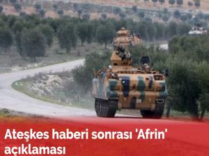 NTV'nin haberine göre, "Türk yetkililer, Suriye'de ateşkes kararının Afrin operasyonunu etkilemeyeceğini" belirtirken, "Türkiye çatışan taraf değil, operasyon teröre karşı" açıklamasında bulundu.