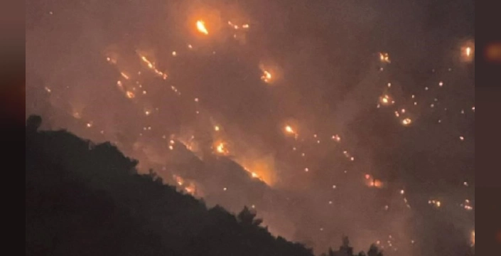 Denizli'nin Buldan ilçesinde başlayan orman yangını, akşam saatlerinde Aydın'ın Buharkent ilçesine sıçradı. Yangın, Buldan ilçesi Çatak Mahallesi'nde öğle saatlerinde yeniden başladı ve söndürme ekipleri zorlu şartlarda çalışmalarını sürdürüyor.