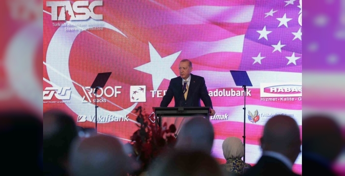 Konuşmasında Türk-Amerikan toplumuna da seslenen Erdoğan, Amerika'daki Türk toplumunun dayanışma ve birlik içinde hareket etmesinden duyduğu memnuniyeti dile getirdi. İkili ilişkilerin müttefiklik ve stratejik ortaklık temelinde ilerletilmesi için çalışmaların sürdürüldüğünü belirtti. Ekonomik ve sosyal hayatına katkı sağlayan Türk toplumuna her alanda destek olmaya devam edeceklerini vurguladı. Başkan Trump ile olan ilişkilerine ve ikili işbirliğinin çeşitli alanlardaki gelişmelerine de değindi.