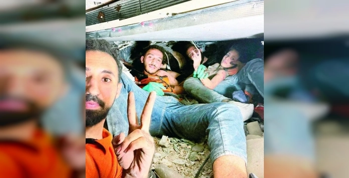 İsrail ordusunun El-Derec Mahallesi'ndeki bir binayı hedef alması sonucu yıkılan binanın altında kalan Marah ve ailesi, uzun saatler sonra enkazdan kurtarıldı.