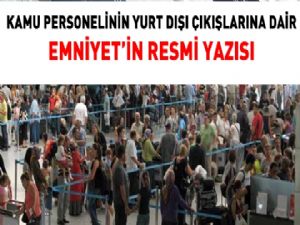 Emniyet Genel Müdürlüğünün yurtdışı çıkışlara dair resmi yazısında, kamu personelinin kendi kurumundan, yurt dışına çıkışında mani bir hal bulunmamaktadır şeklinde yazı edinilmesi istendi.