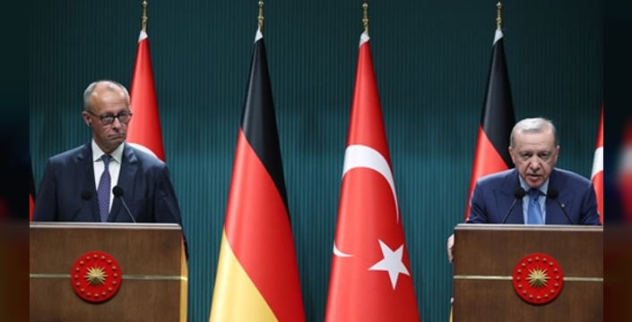 Cumhurbaşkanı Erdoğan, Almanya Başbakanı Merz’in Türkiye’ye yaptığı ilk resmi ziyaretten memnuniyetini belirterek, iki NATO müttefiği olarak ortak çıkarları ve uluslararası meseleleri ele aldıklarını ifade etti. Türkiye’nin Avrupa Birliği’ne tam üyelik sürecine vurgu yapan Erdoğan, kararlı iradelerinin karşılık bulması halinde kısa sürede ilerleme kaydedilebileceğini söyledi.