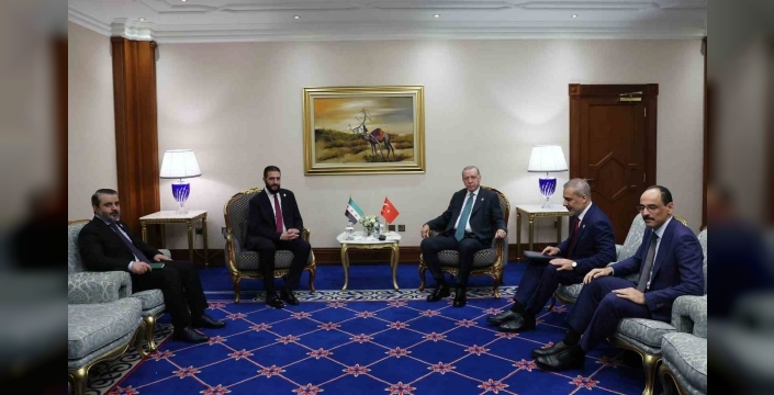 Türkiye'nin Suriye'ye verdiği desteğin süreceğini belirten Erdoğan, iki ülke arasındaki ilişkilerin geliştirilmesi için çaba sarf ettiklerini ifade etti. Suriye'nin birlik ve bütünlüğünün korunmasının önemine dikkat çeken Erdoğan, Suriye Demokratik Güçleri'nin (SDG) 10 Mart mutabakatına uymasının gerekliliğini dile getirdi. Görüşmeye, Dışişleri Bakanı Hakan Fidan ve Milli İstihbarat Teşkilatı Başkanı İbrahim Kalın da katıldı.