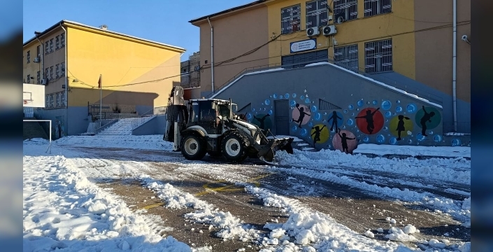 Bir haftalık kar tatilinin ardından yarın yeniden açılacak okullar için harekete geçen belediye, eğitim alanlarında ve çevresinde oluşan riskleri ortadan kaldırdı. Okul bahçelerinde don nedeniyle sertleşen kar kütleleri temizlenirken, öğrencilerin güvenliği en üst düzeyde tutularak kayma ve düşmelere karşı gerekli önlemler alındı.
