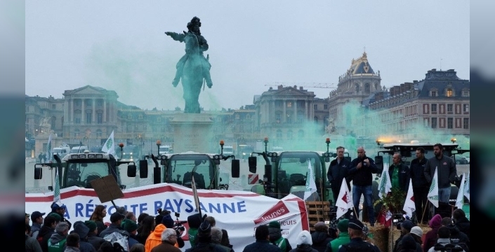 Ülkenin önde gelen çiftçi sendikalarından FNSEA'nın çağrısıyla bir araya gelen Fransız çiftçiler, haksız rekabete yol açacağını düşündükleri AB-MERCOSUR anlaşmasının iptalini talep etti. "Çiftçi isyanı Versay'da yeniden başlıyor" yazılı bir pankart açan çiftçiler, traktörleriyle kentte konvoy oluşturarak seslerini duyurmaya çalıştı.