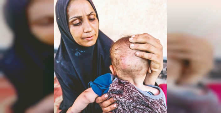 Gazze'nin Mevasi bölgesinde yaşayan Ümmü Muhammed el-Masri, 7 aylık bebeğinin cildinde oluşan kabarcıklar ve yaralar nedeniyle yaşadığı acıyı dile getirdi. Doktorların bebeğin yetersiz beslenmeden kaynaklanan bir cilt sorunuyla karşı karşıya olduğunu söylediğini belirten anne, çaresizliğini şu sözlerle ifade etti: “Çocuğum süt içemiyor ve derisi çürüyor. Bir anne olarak yapabileceğim hiçbir şey yok.”