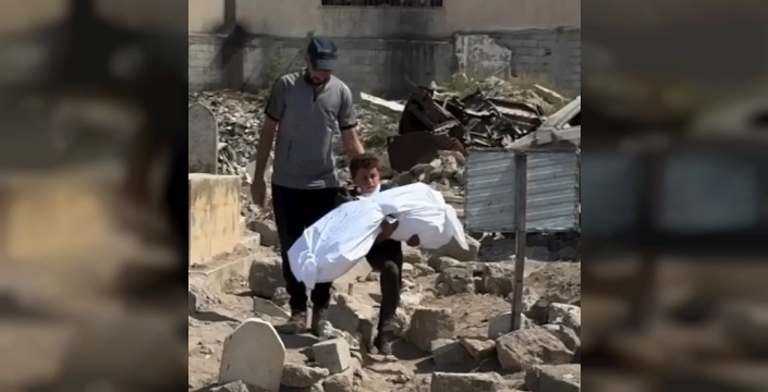 Hayatta kalan küçük çocuk, dört yaşındaki kuzeninin cansız bedenini kollarına alarak mezarlığa yürüdü. Oyuncak taşıyacak yaşta olan çocuk, bir cenaze taşıdı. Sessizliğiyle dünyaya haykıran çocuğun görüntüsü, Gazze'deki insanlık dramının en acı sembolü oldu.