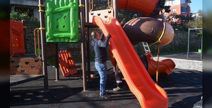 Park ve Bahçeler Müdürlüğü ekipleri, çocuk oyun alanları ve spor alanlarında bulunan tüm ekipmanları dikkatle inceliyor. İhtiyaç doğrultusunda bu ekipmanlarda onarım ve değişim işlemleri gerçekleştiriliyor.