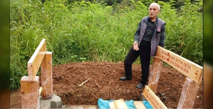 Giresun'un Bulancak ilçesinde yaşayan 71 yaşındaki Tuncel Pekdemir, farklı bir mezar tercihiyle dikkat çekti. Ölmeden önce yaptırdığı mezarında, çevreye ve tarım arazilerine duyarlılığını gözler önüne seren bir mesaj yer alıyor.