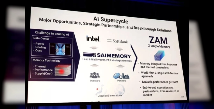 Intel, bellek pazarındaki varlığını güçlendirme hedefiyle dikkat çekici bir adım atıyor. SoftBank'ın bir iştiraki olan Saimemory ile iş birliği yaparak geliştirdiği yeni bellek teknolojisi Z-Angle Memory (ZAM) prototipini ilk kez sergiledi. Bu yeni çözüm, özellikle Yüksek Bant Genişlikli Bellek (HBM) teknolojisinin hakimiyetini kırmayı ve pazarda rekabeti artırmayı amaçlıyor.