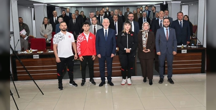 Milli sporcular Fatmagül Çevik ve Mustafa Erdoğan ile antrenörleri Ferit Şen, Isparta Belediye Meclisi'nin kasım ayı toplantısına misafir olarak katıldı. Toplantı öncesinde sporcuları makamında ağırlayan Belediye Başkanı Şükrü Başdeğirmen, her iki sporcuyu da başarılarından dolayı tebrik ederek altınla ödüllendirdi. Başkan Başdeğirmen, Fatmagül Çevik'in Isparta Belediyesi'nin bir sporcusu olarak uluslararası alanda büyük başarılar kazandığını ve Türk Bayrağı'nı göndere çektirmenin gururunu yaşattığını belirtti. Mustafa Erdoğan'ın da Çevik gibi başarılarını en üst seviyeye taşıyacağına inandığını ifade eden Başkan, antrenör Ferit Şen'e de gösterdiği özveri ve hizmetlerden dolayı teşekkürlerini iletti. Konuşmaların ardından Başkan Başdeğirmen, milli sporcular, antrenör ve belediye meclis üyeleriyle birlikte hatıra fotoğrafı çektirdi.