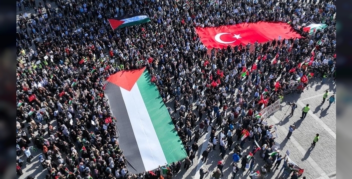 Camilerin avluları ve çevresinde toplanan vatandaşların, Türk ve Filistin bayraklarıyla yürüyüşe hazırlık yaptığı gözlemlendi. Soğuk havaya rağmen Sultanahmet Meydanı'nda yoğun bir katılımın olması dikkat çekti. Güvenlik önlemleri de oldukça sıkıydı, katılımcılara sıcak ikramlar sunuldu.