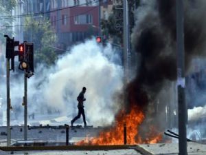 Bu sırada grubun önü TOMA ve çevik kuvvet ekipleri tarafından kesildi. Polis grubun yürümesine izin vermeyince gerginlik yaşandı. Gruptakilerden bazıları polise havai fişek, taş ve sopalarla saldırdı. Çevik kuvvet polisi ise gruba biber gazı kullanarak müdahale etti.