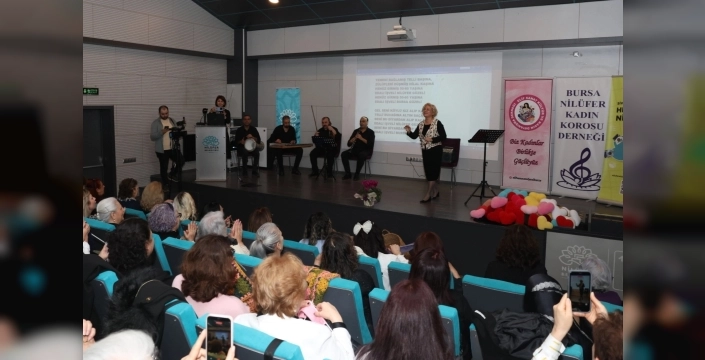 Bursa'da Nilüfer Belediyesi tarafından düzenlenen "Kalpten İlmekler İyilik Sahnesinde" adlı etkinlikte, kadınlar hem gönüllerince şarkılar söyledi hem de huzurevi sakinleri için el emeği göz nuru örgülerini hazırladı.