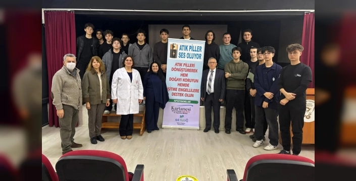 Ekolojik Eğitim Kulübü ve Kuraklık ve Su Okuryazarlığı Kulübü'nün ortaklaşa düzenlediği bir konferansta, Kartanesi İşitme Cihazları Kurucusu Enis Özgünay, öğrencilere atık pillerin doğaya verdiği zararlar ve bu konuda alınması gereken önlemler hakkında bilgi verdi. Özgünay, okullarda çevre bilincini artırma hedefiyle yürüttükleri "Atık Piller Ses Oluyor" projesi kapsamında, toplanan atık pillerin çevreye zarar vermeden geri dönüştürüldüğünü ve bu sürecin sonunda elde edilen gelirle ihtiyaç sahibi işitme engellilere işitme cihazı temin edildiğini veya bakım desteği sağlandığını anlattı.
