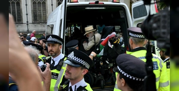 İngiltere'de polis, yasaklı örgüt ilan edilen 'Palestine Action' grubuna destek amacıyla Londra'da düzenlenen bir eylemde çok sayıda kişiyi gözaltına aldı. Parlamento Meydanı'nda toplanan protestocular, yerel saatle 13.00'te eylemlerine başladı. Bu eylem, 'Palestine Action'ın yasaklanmasına karşı çıkan 'Defend Our Juries' adlı grubun çağrısıyla gerçekleştirildi.