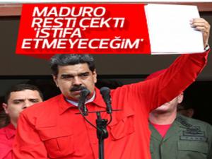 Venezuelanın seçilmiş resmi Devlet Başkanı Nicolas Maduro, Venezuelada adli yılın açılışına başkanlık etmek üzere Yüksek Adalet Mahkemesi (TSJ) önüne geldi. Hiçbir koşulda istifa etmeyeceğim. diyen Maduro, başta ABD olmak üzere görevi bırakmasını isteyen pek çok ülkeye rest çekti.