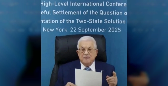 Filistin Devlet Başkanı Mahmud Abbas, BM Genel Merkezi’nde düzenlenen yüksek düzeyli uluslararası konferansa ABD’nin vizesini iptal etmesi nedeniyle video mesajla katıldı.