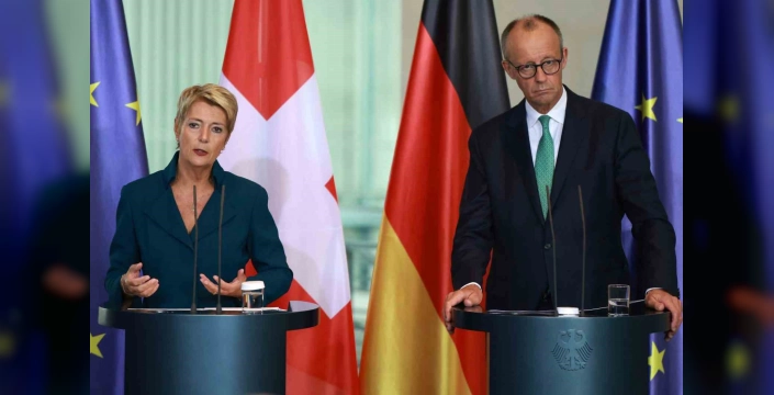 Almanya Başbakanı Friedrich Merz ve İsviçre Konfederasyonu Başkanı Karin Keller-Sutter Berlin’de bir araya geldi. İkili görüşmenin ardından düzenlenen ortak basın toplantısında, Almanya ile İsviçre arasındaki ticari ilişkiler, sınır güvenliği, ABD’nin gümrük vergilerinin iki ülkeye etkileri ve Rusya-Ukrayna savaşının sona erdirilmesi konularını ele aldıklarını belirttiler. Merz, Perşembe günü yapılacak video konferansta Ukrayna’ya verilecek ilave yardımların da görüşüleceğini ifade etti.