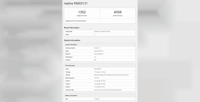 Raporlara göre, RMX5131 model numarasıyla Geekbench kayıtlarında yer alan Realme 16 Pro+ modelinin, şirket tarafından yapılan bir resmi açıklamada Snapdragon çipinin Snapdragon 7 Gen 4'ten daha güçlü olduğu iddia edilmişti. Ancak Geekbench kaydı, cihazın bir Qualcomm çipi ile çalıştığını ve bu çipin teknik özelliklerinin Snapdragon 7 Gen 4 ile birebir örtüştüğünü gösteriyor. Bu durum, Realme 16 Pro+ modelinde kullanılan çipin, bazı ince ayarlar veya optimizasyonlar yapılmış bir Snapdragon 7 Gen 4 olabileceğine işaret ediyor.