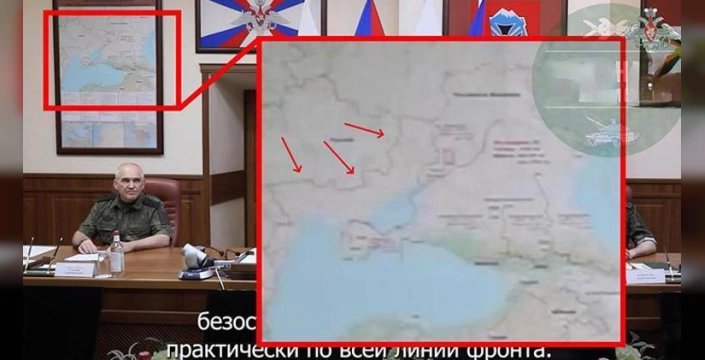 Rusya Savunma Bakanlığı'nın yayınladığı bir videoda, Genelkurmay Başkanı Valery Gerasimov'un konuşması sırasında, Ukrayna'yı gösteren ve üzerinde 'yeni sınırlar' işaretlenmiş bir harita dikkat çekti. Harita, Ukrayna'nın halen kontrolünde olan bölgeleri bile Rusya'ya dahil ederek, ülkenin toprak bütünlüğünü tehdit eden bir görünüm sergiliyor.