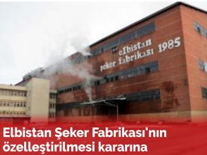 AKP'nin şeker fabrikalarını özelleştirme kararı kapsamında hedefteki yerlerden biri de Elbistan'daki Şeker Fabrikası oldu. Türkiye Komünist Partisi Elbistan İlçe Örgütü, konuya ilişkin bir açıklama yaparak, "Bu saldırıyı durdurmak için üzerimize düşeni yapacağız, tüm emekçi halkımızı da durmayıp harekete geçmeye çağırıyoruz" ifadelerini kullandı.