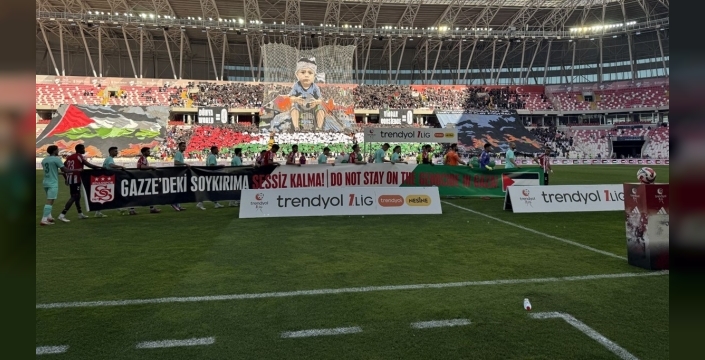 4 Eylül Stadyumu'ndaki mücadele öncesinde tribünlerde yer alan Sivasspor taraftarları, Gazze'de yaşanan insanlık dramına dikkat çekmek için özel bir koreografi hazırladı. Koreografide, başı sarılı ve elinde futbol topu tutan bir çocuğun görseli yer alırken, "Dünya:0-Vicdan:0" yazısı da dikkat çekti. Taraftarlar bu anları cep telefonlarıyla kaydetti.
