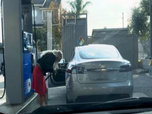 Aşağıdaki videoda da görebileceğiniz gibi Tesla Model S kullanan bir kadın, otomobilin ELEKTRİKLİ olduğunun farkında olmadığı için aracın yakıt bitiyor uyarısı üzerine soluğu benzin istasyonunda alıyor. Kadın, aracın depo kapağını bir hayli arıyor fakat bir türlü bulamıyor; çünkü YOK......!