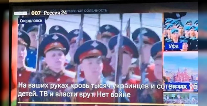 Ukraynalı izleyiciler, normal yayın akışı yerine Moskova'daki büyük askeri geçit törenini izledi. Törende tanklar, askerler ve ağır silahlar yer aldı. Associated Press'e (AP) göre, verilen mesaj gözdağı niteliğindeydi ve 21'inci yüzyıl savaşlarının karada, denizde, havada olduğu kadar siber alemde ve uzayın uçsuz bucaksız noktalarında da sürdüğünün kanıtıydı.