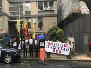 Londra: Yunan Konsolosluğunun önünde buluşan grup, Free Turgut Kaya Now (Turgut Kaya derhal serbest bırakılsın), Stop extradition of Turgut Kaya to Turkey (Turgut Kayanın Türkiyeye iade edilmesini durdur) pankart ve sloganları ile Kayanın özgürlüğünü talep etti.