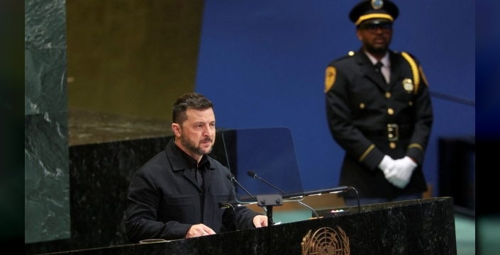 Birleşmiş Milletler Zirvesi'nde konuşan Ukrayna Devlet Başkanı Volodimir Zelenski, uluslararası hukukun güçlü dostlar olmadan işe yaramadığını vurguladı.