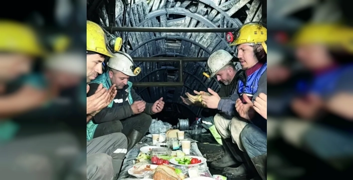 Zonguldak’ta, yerin metrelerce altında kömür çıkaran maden işçileri, Ramazan’ın ilk sahurunu yerin 120 metre altında gerçekleştirdi.